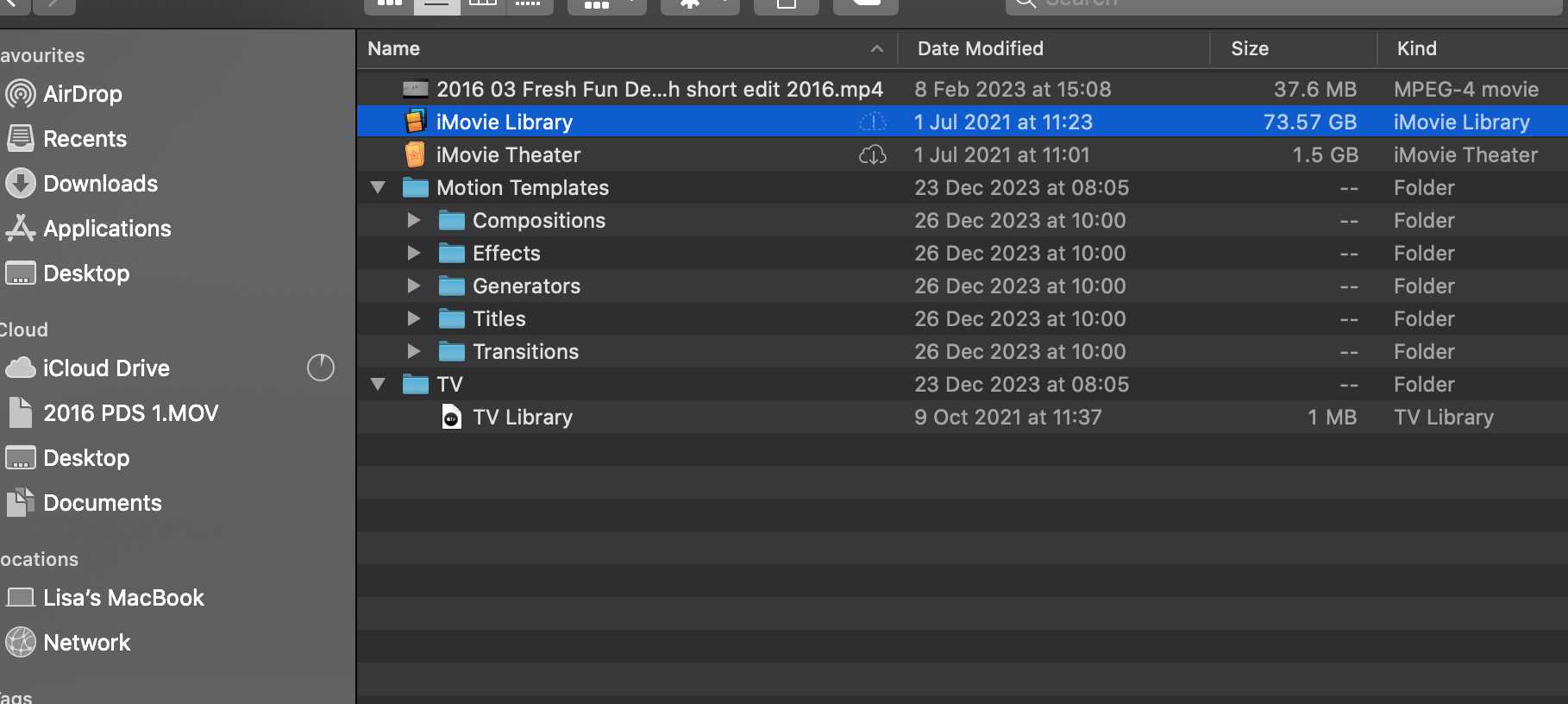 I have just opened my iMovies and all my projects have disappeared. When I look in finder under Movies I can see that there is 73gb worth of data there but the cloud is dotted with an exclamation mark? I can however access and play some of the projects that I uploaded to my Apple TV under downloads?