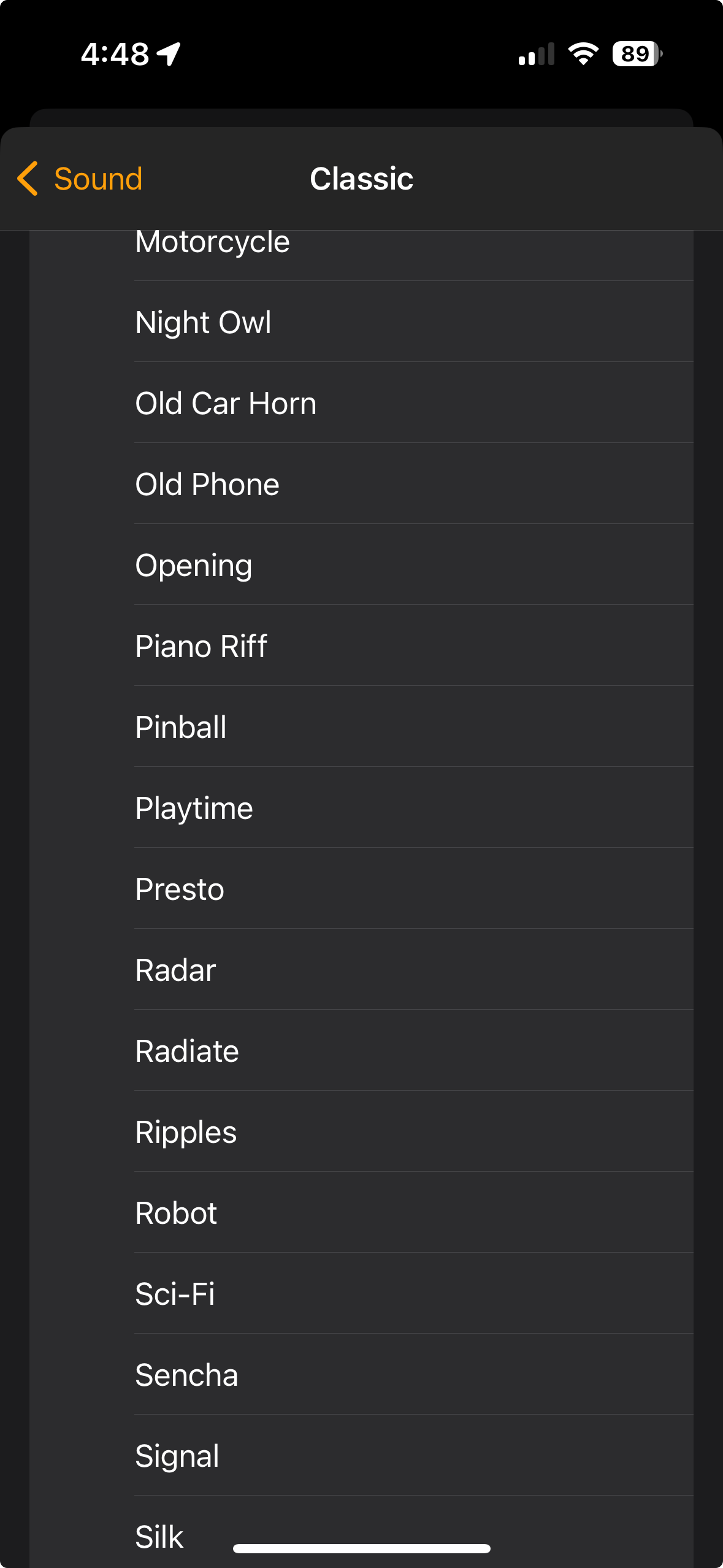 I go to the clock app and set a new alarm for on the morning, I fix it to the right times and i go to change the sound and Radar isn’t available, I looked on classic too, not available. How do I use Radar alarm sound?