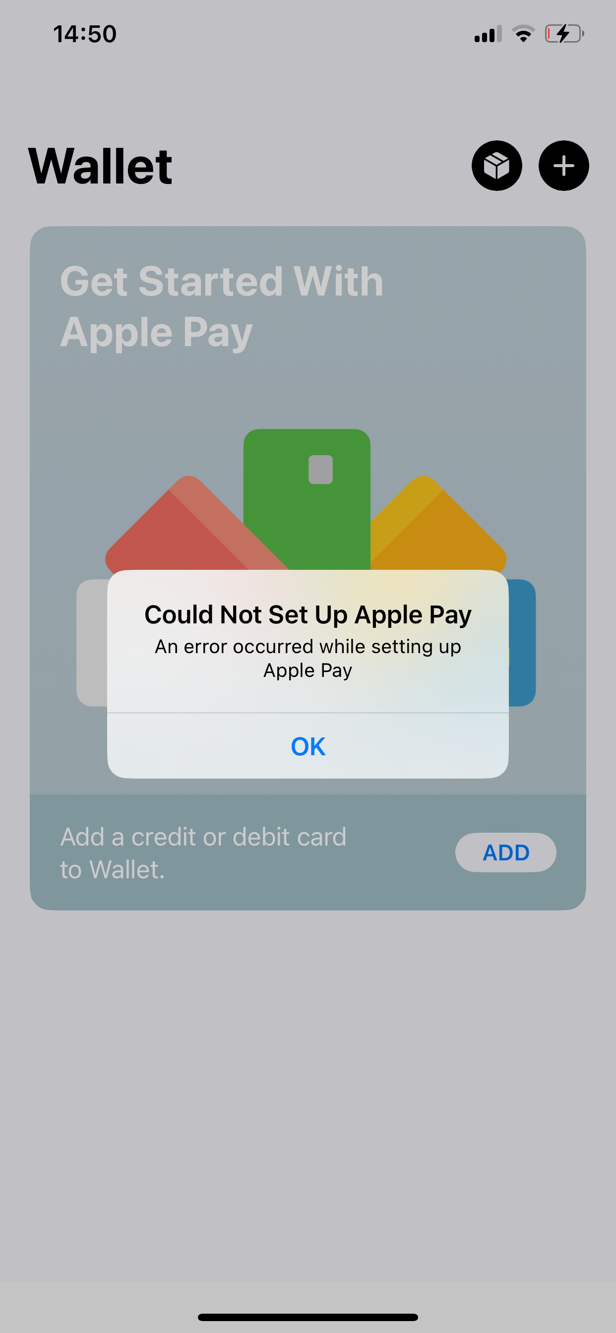 I’m having this exact same issue. Every time I press the (+) button to add a new card, I get the same “Could Not Set Up Apple Pay” error message. Same thing with Apple Cash. I tried managing it through settings, but still nothing. The Double-Click Side Button function also stopped working. So inconvenient. I’m not really sure what else to do except for make an appointment at my local Apple Store to have it looked at, because everything seems to be in perfect working order. I just can’t get past those error messages.