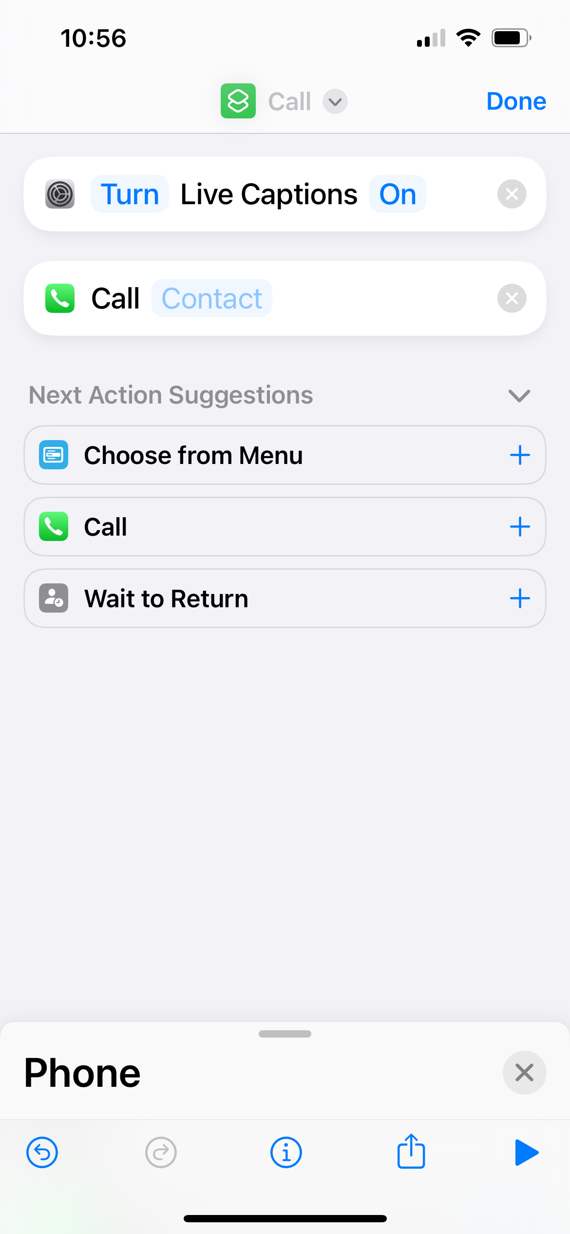 Hi all, I’m trying to create a shortcut that when the Phone app is launched, or if there is an incoming call that Live Captions automatically come on. See attached screenshot. Has anyone come up with an effective solution?