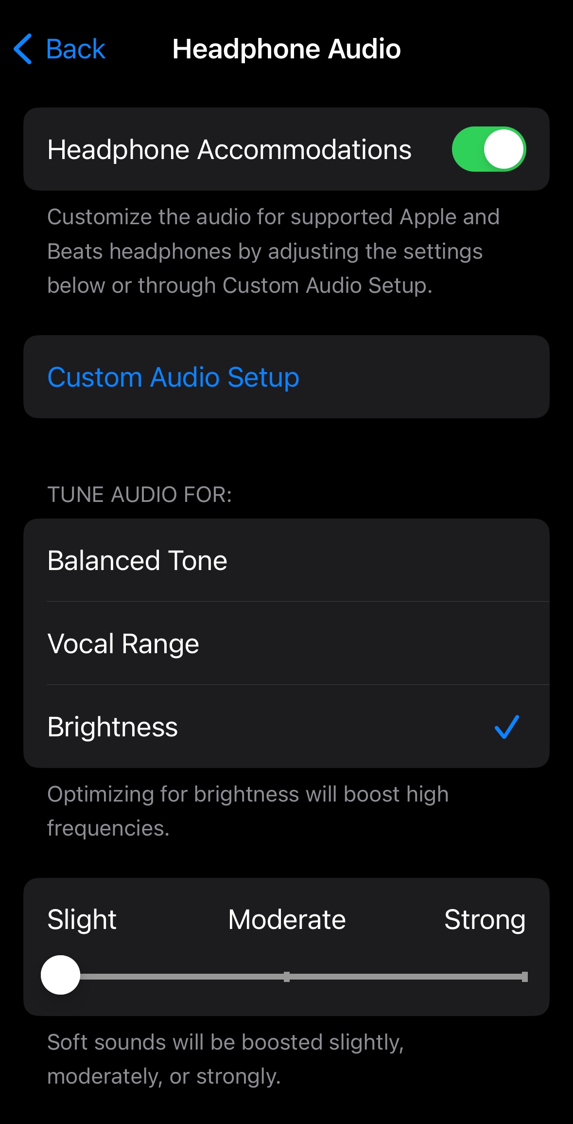4) Go to the Accessibility option under iPhone Settings —> Audio & Visual —> Headphone Audio Configure as per below: