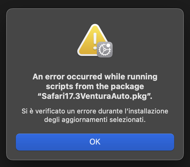 Safari Update to 17.3 Fails With Error. macOS Ventura.
