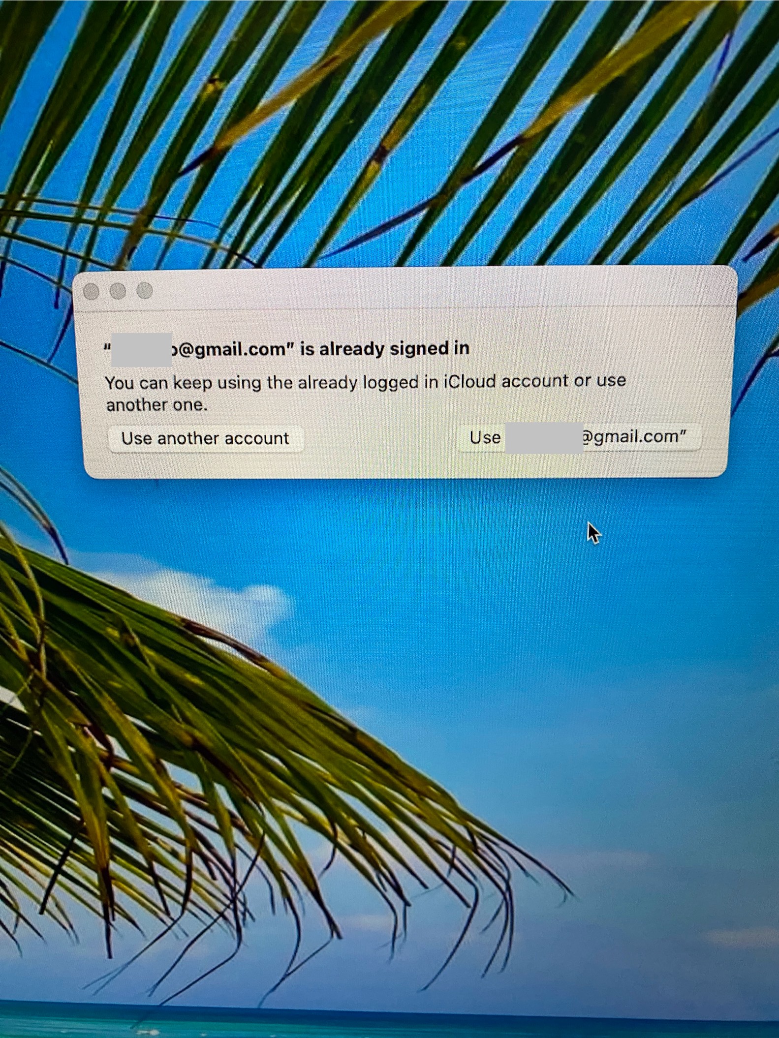 "xxxx@gmail.com" is already signed in