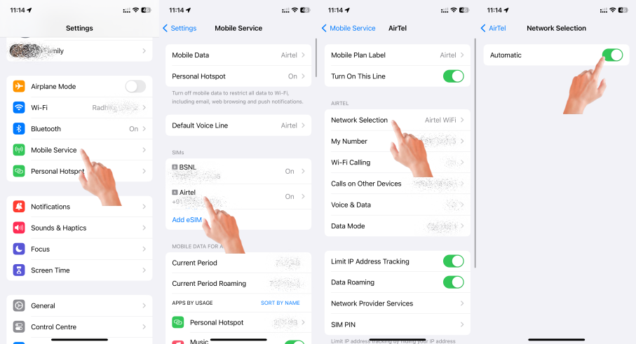 - Network Selection of Mobile Services should be set to Automatic as shown in the pic below