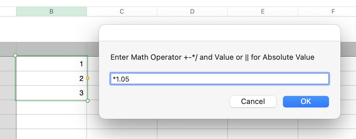It allows you to do math operations on a selected range of cells. You will want to multiply by 1.05