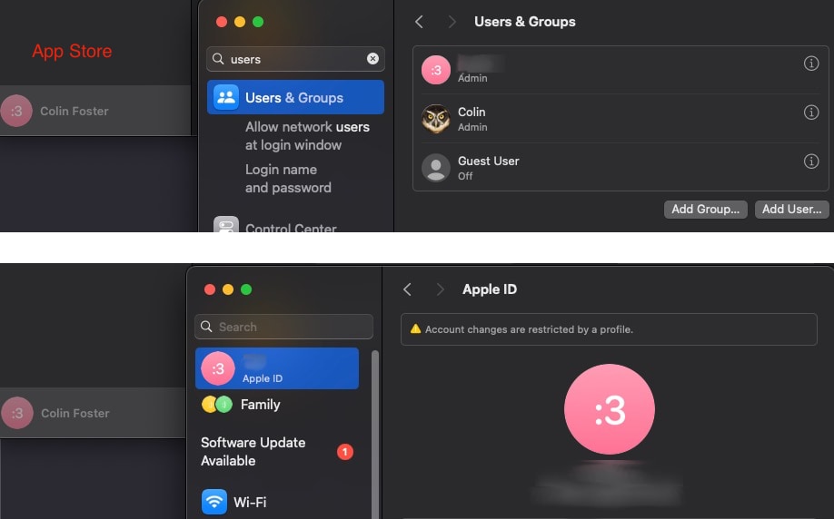 Somehow my kid's computer is signed into the Mac App Store using my Apple ID instead of their own.