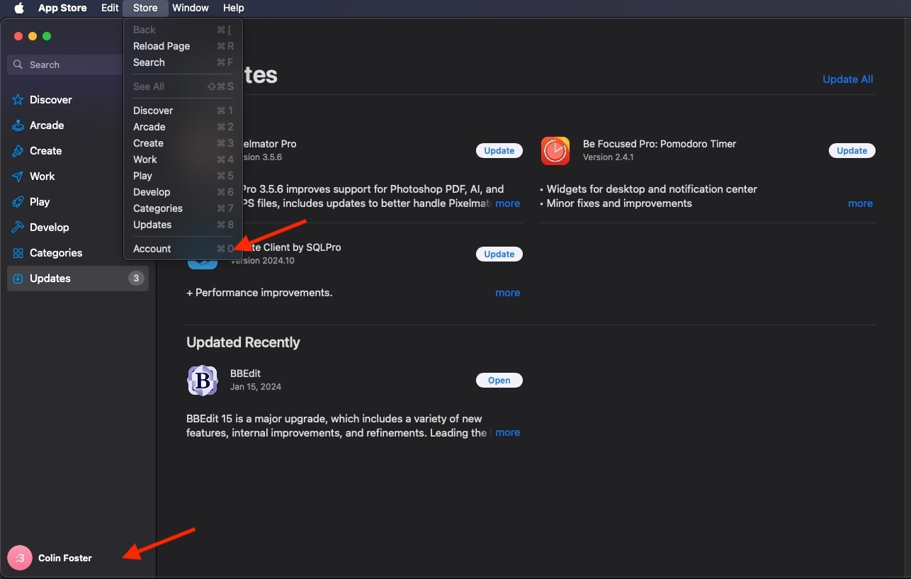 How do I log out of the App Store in MacOS Sonoma?