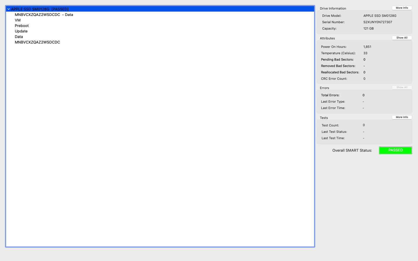 disk0 - APPLE SSD SM0128G 121.33 GB (Solid State - TRIM: Yes)