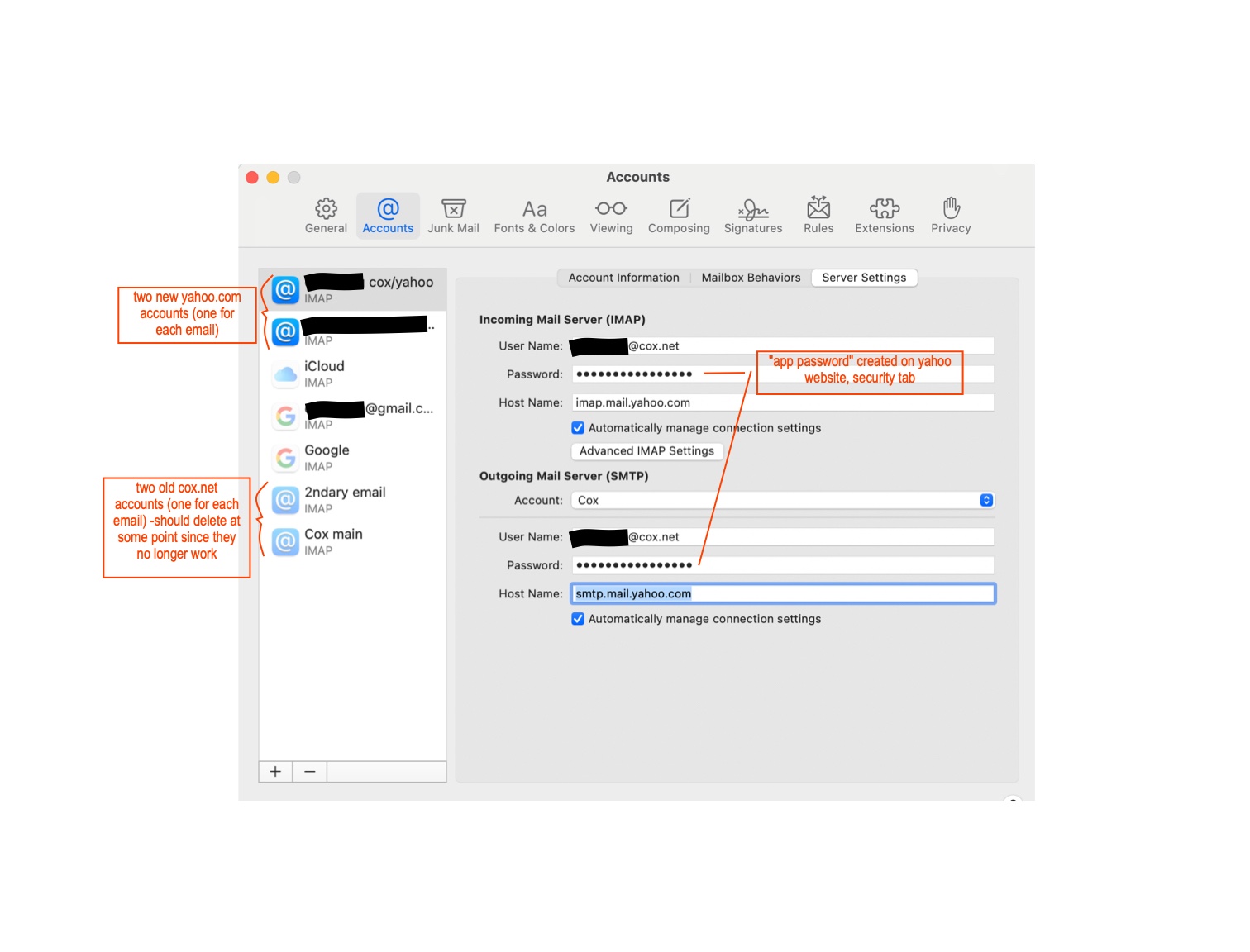 Regarding woodmeister50's comment that pretty much any email service can be added to the Apple Mail app...this is absolutely true. But keeping the ability to use our Cox email addresses with Yahoo Mail requires quite a bit of preparation beforehand.