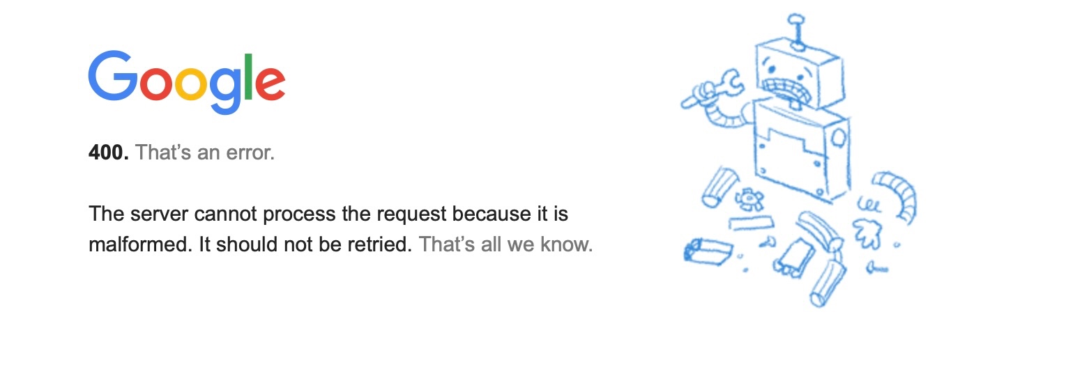 ''Sercannot process the request because it is malformed. It should not be retried.''