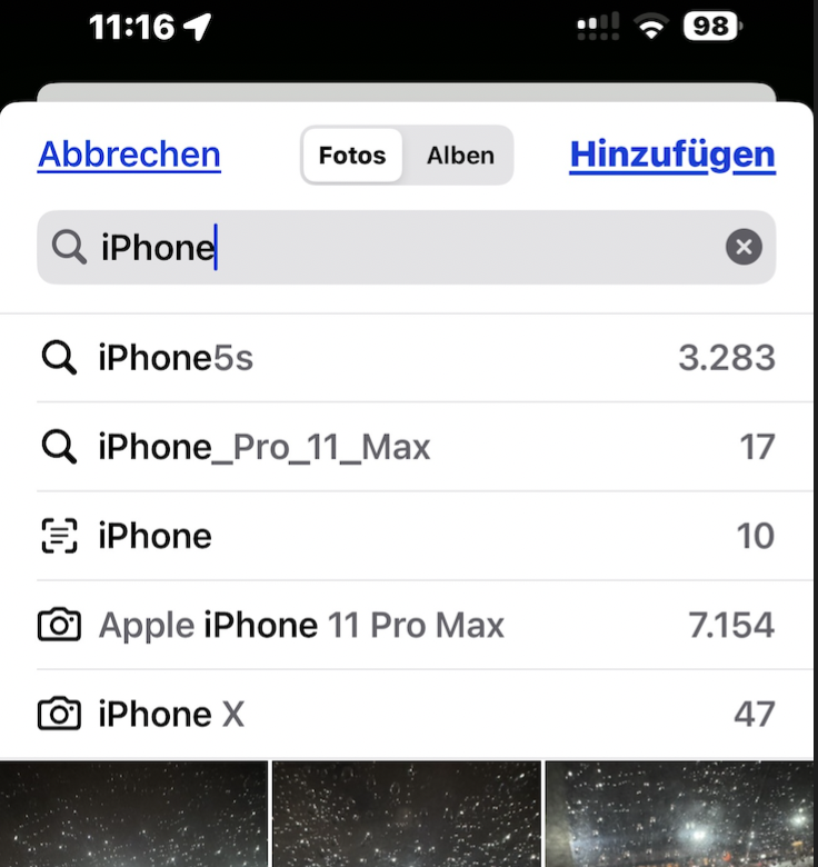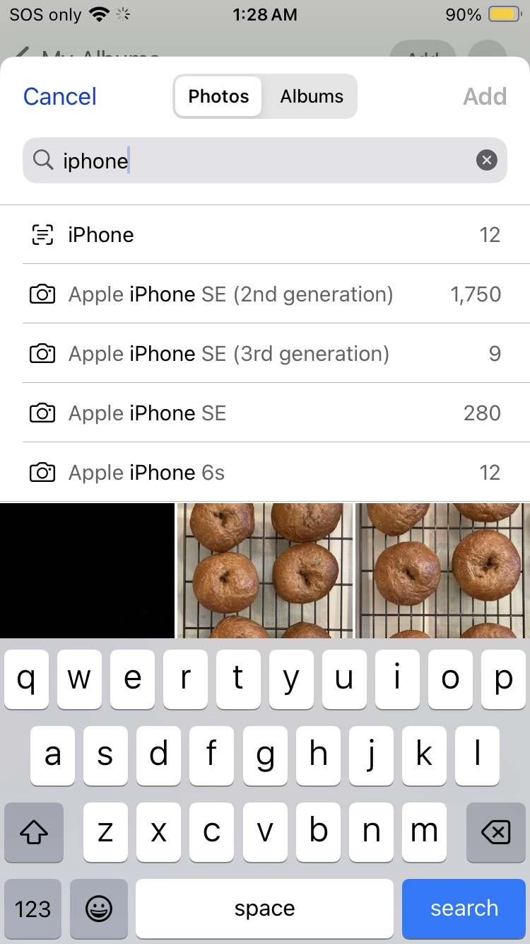 If your Library contains photos from other iPhones, you'll see a list of all iPhone models used to create the images, and the number of matching images, saved in your iPhone Photos library.
