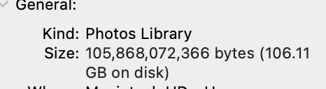 5. Also, you can select all the files/folders in this window, right click on the highlighted files then select “Get Info” to see the total amount of space that all files and folders in the Library are using.