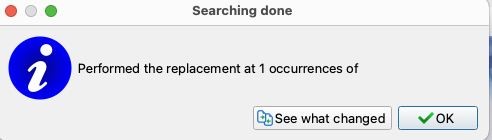 I leave Replace blank (nothing entered) and click Replace All. A confirmation panel will appear confirming the replacement(s). The [obj] will not appear in this panel after occurrences of. Click OK.