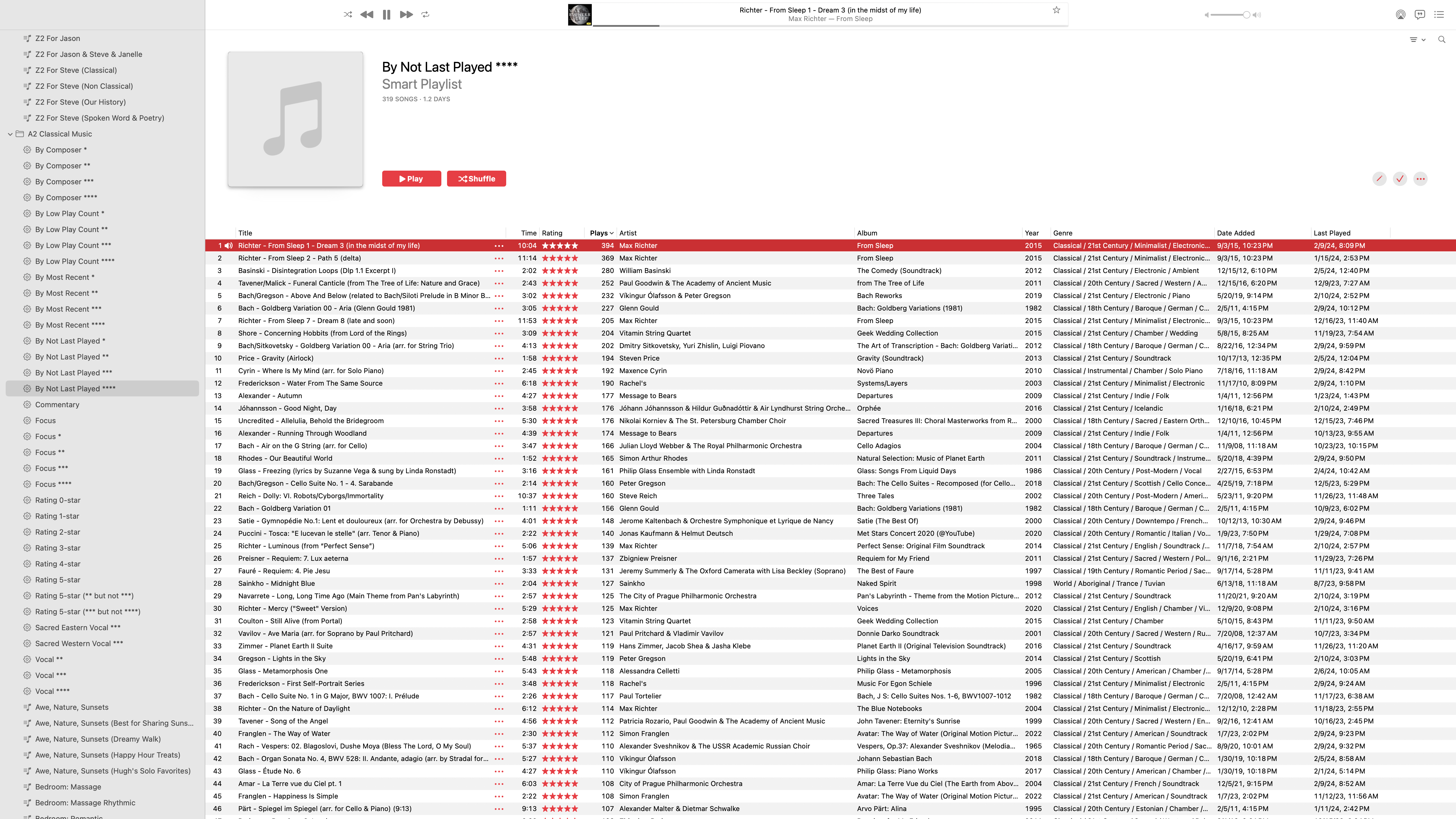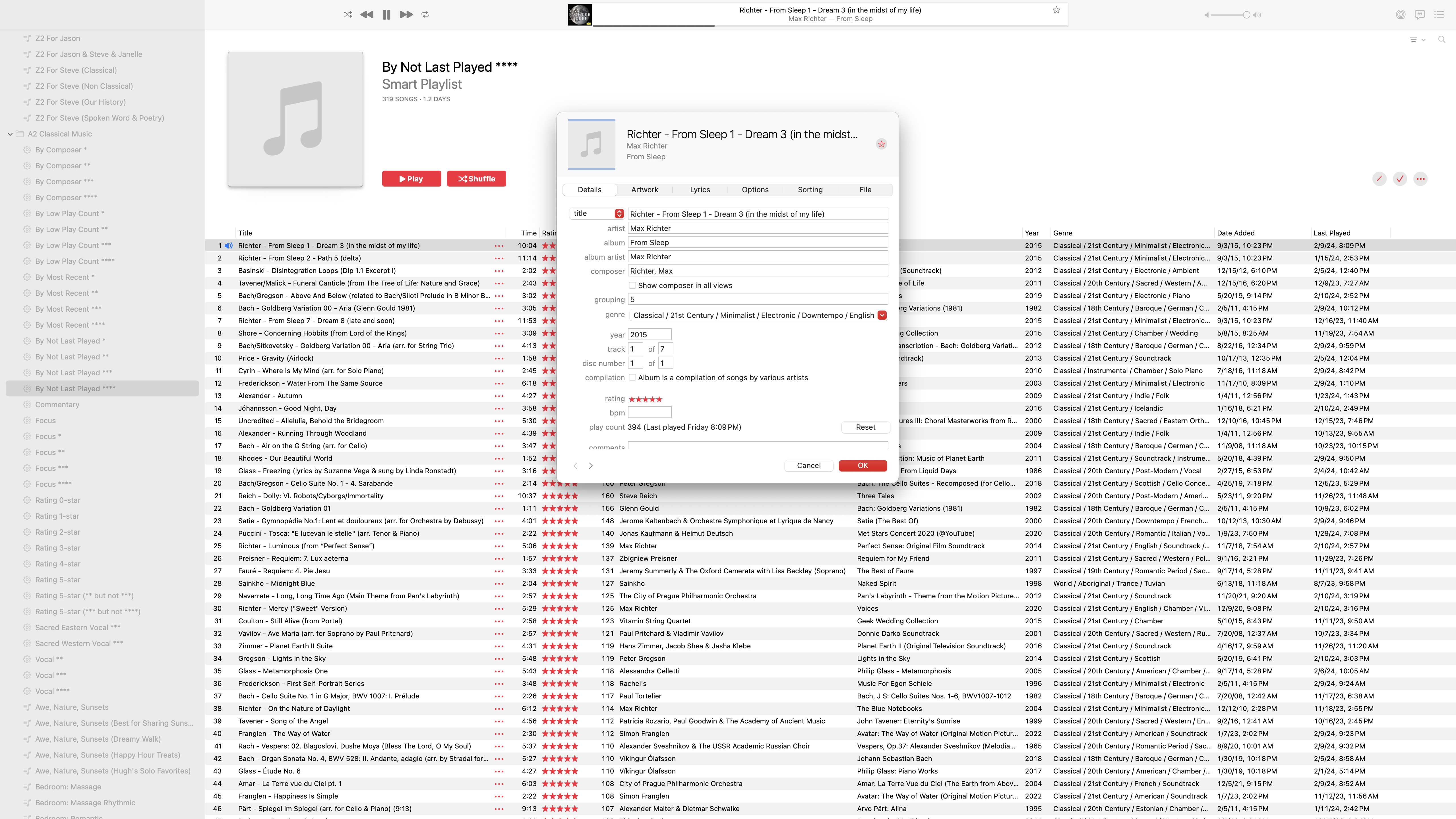I start with all the music in a single folder on my Mac. Next, I put my "iTunes Library.itl" and "Album Artwork" folder from my PC in the Music folder on my Mac. I start the Music app on my Mac while holding down the option key. This brings up a menu asking me which library I want to use. I point it to my "iTune Library.itl" file. It imports my library. On my Mac, in the Apple Music application, I go to Settings > Files and change the "Music Media folder location" to be the folder where my music is located on my Mac. I click to play a song in the Music app, and MacOS asks me to locate it. I locate it correctly, and it plays correctly. I click on another song, and MacOS asks if I want to look in the same location to find other missing files, and I agree. The Music app then finds all my music correctly (though it takes a couple of hours). At this stage: all my songs play correctly in Music; my playlists are there and in tact; the Play count, Rating, Date Added, and Last Played are all there and correct. Even my dozens of Smart Playlists work correctly, which is great. But....