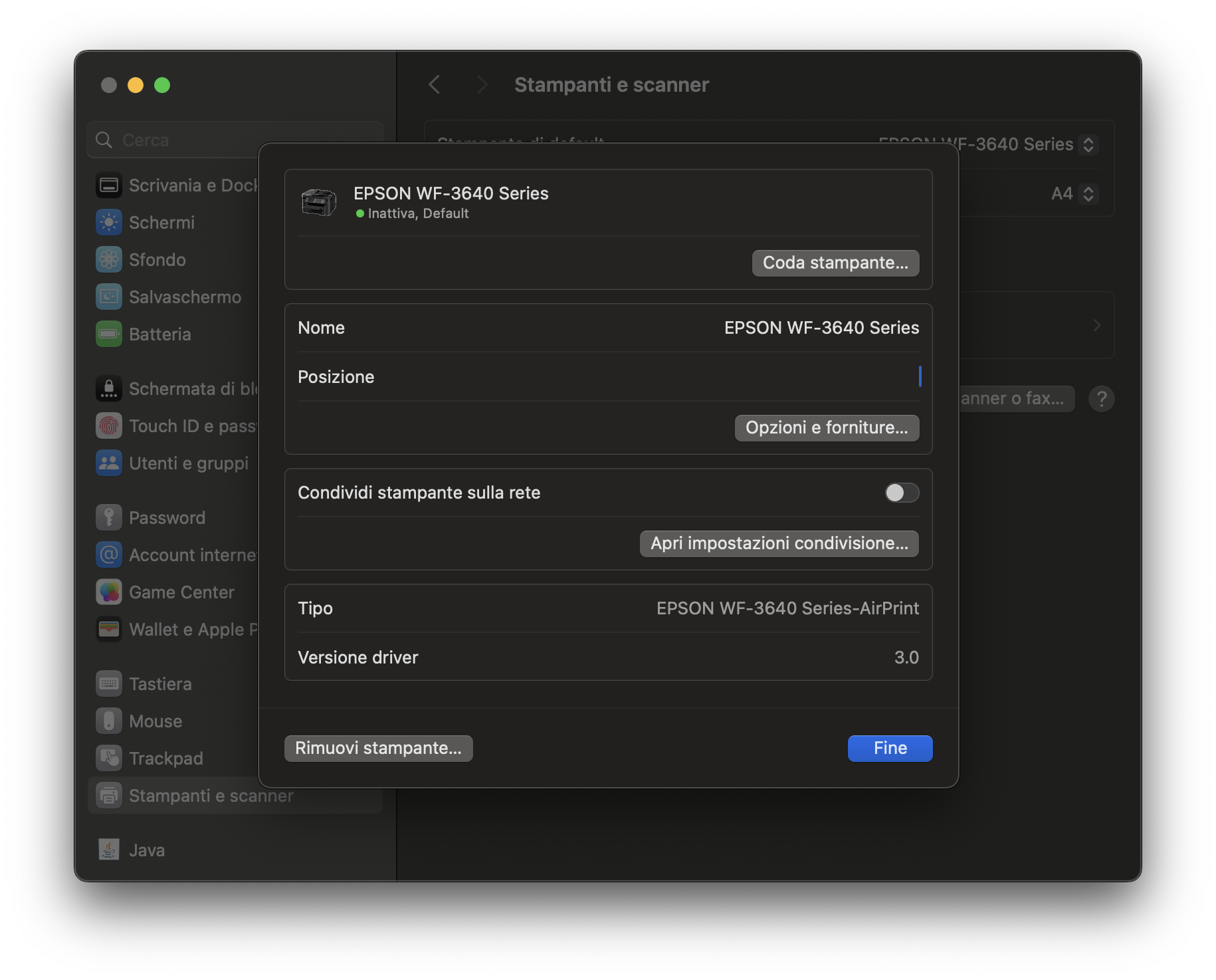 Hello everyone! I have a problem with my AirPrint EPSON WF-3640 printer. When I set it in the mac settings, this appears to me: