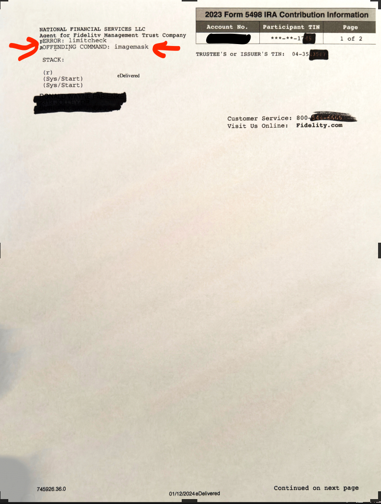 Out of the blue .... ERROR: limitcheck OFFENDING COMMAND: imagemask message on HP Printer