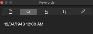 But it changed the creation date to Jan. 9, 2085 instead. I wonder if it sees '12/04/1948' and rather than seeing a date it does some calculation instead, arrives at a number, and maybe moves the file's date forward for that number of days? Well, I'm not sure what's happening.