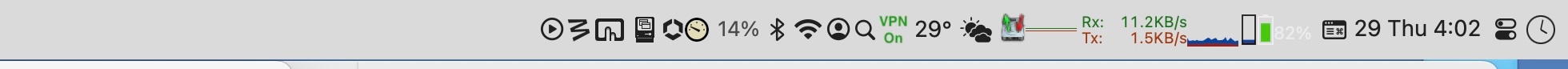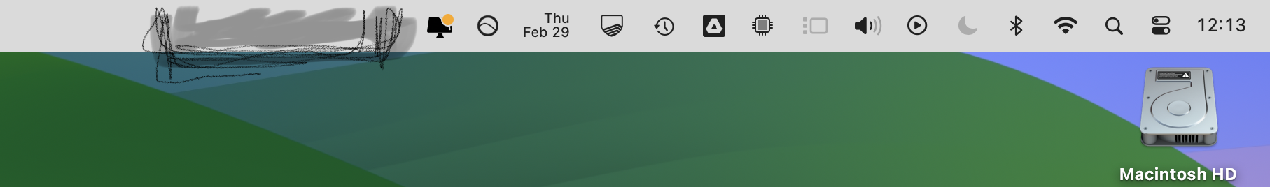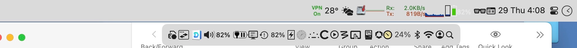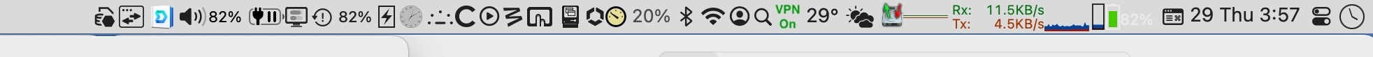 And I use 2 external monitors (one 32" 4K) which is not a problem, but I also still use my laptop screen and if I turn off Bartender, I have some thing that looks like this: