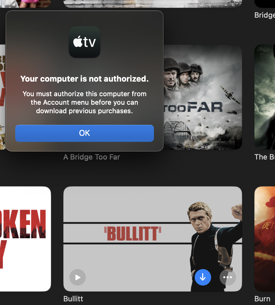 I just got my new 16 inch MacBook Pro and am unable to download my existing movie library. I cannot find a way to do it. It worked fine on my Macbook Air that I am replacing. Any help is appreciated.