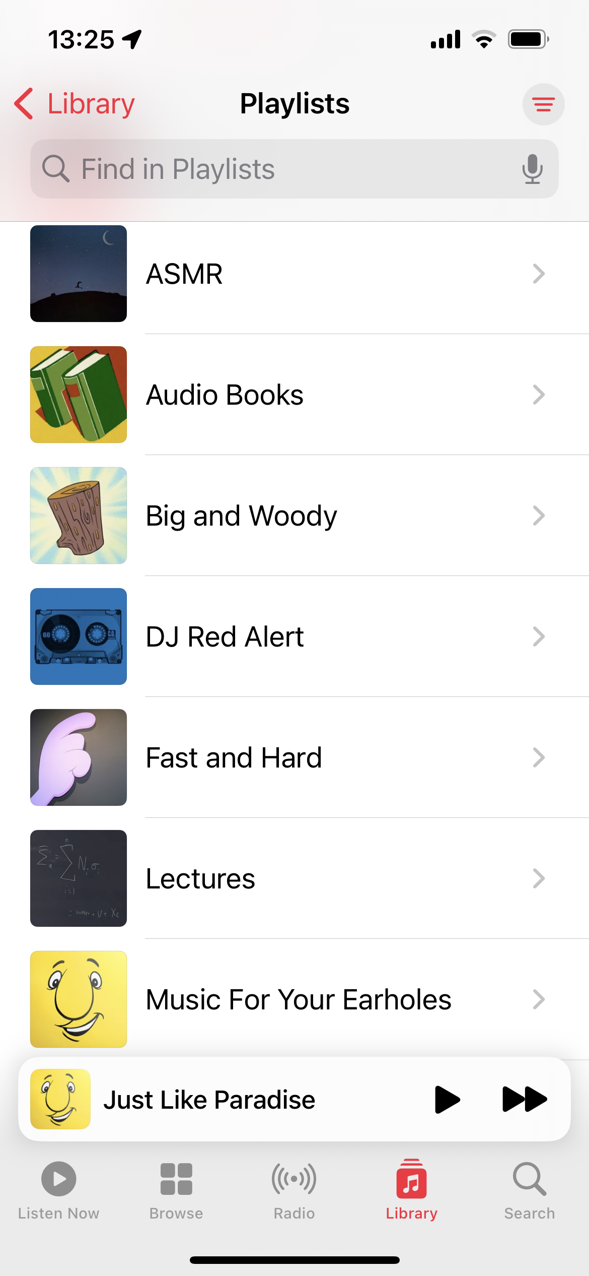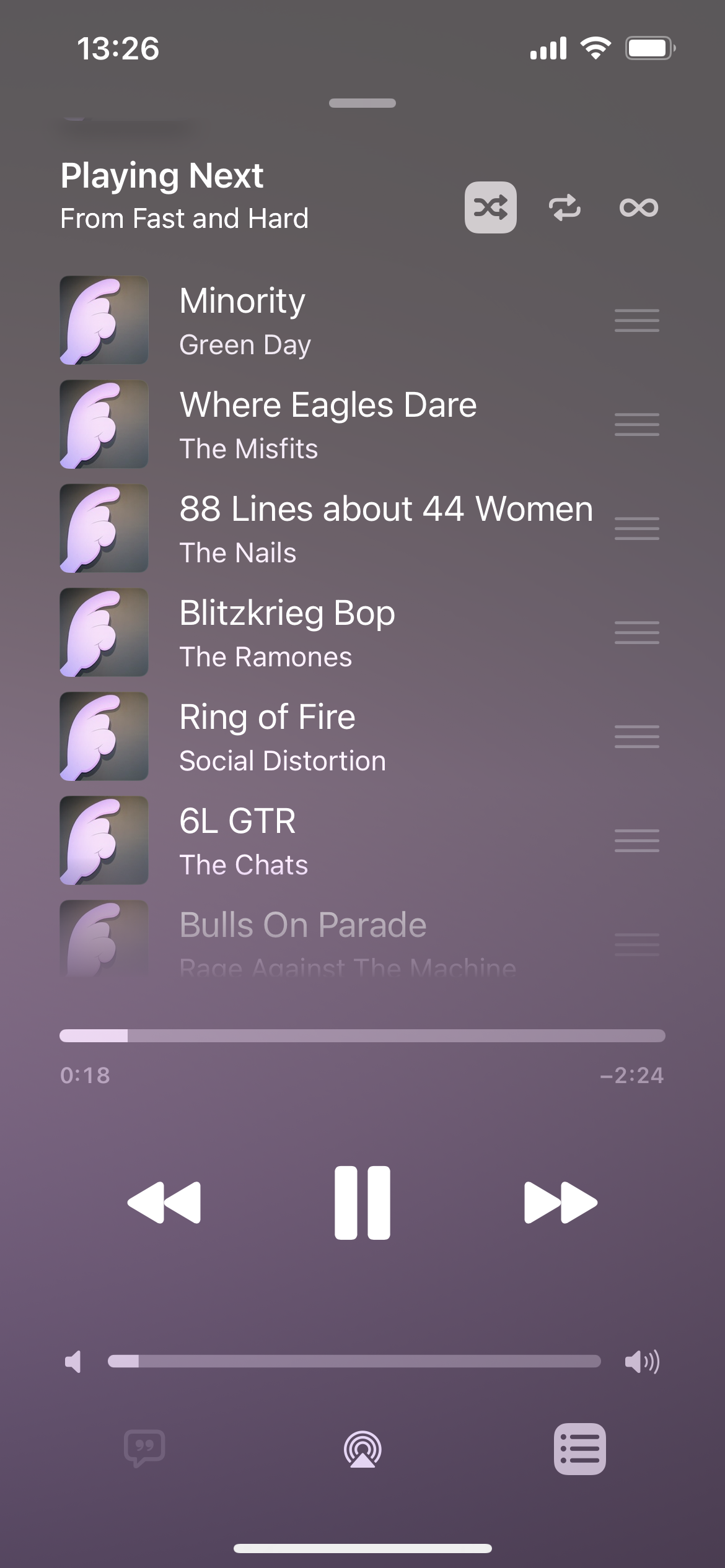 Screenshot Music for your Ears shows that when this playlist is playing and shuffle is selected it's shuffling from the playlist Fast and Hard