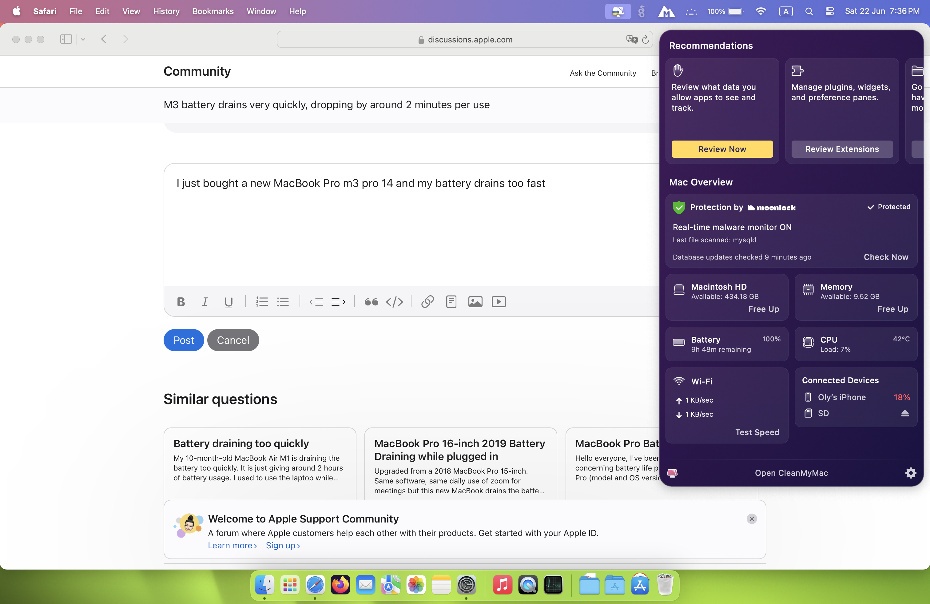 - For those using CleanMyMac, it's possible to further reduce battery usage by disabling malware protection, notifications, and any periodic scans to disable the "CleanMyMac X HealthMonitor" process. I haven’t done this myself