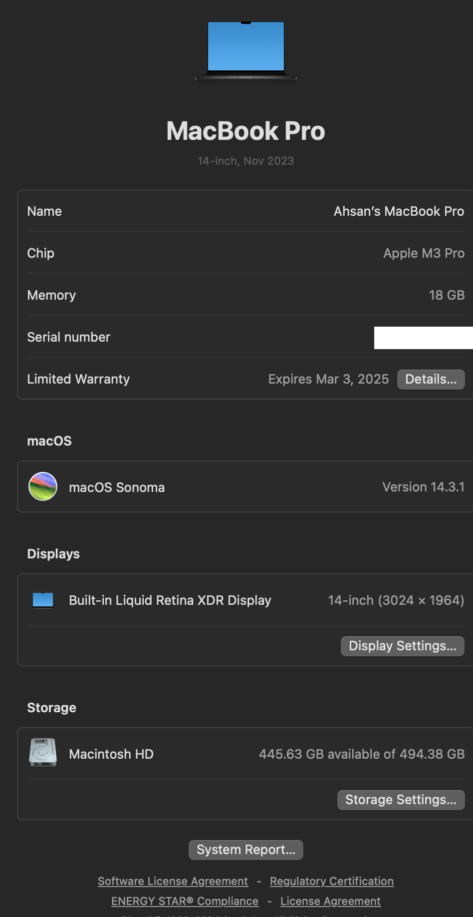 - Installed Al Dente Pro to increase battery lifespan and monitor instant consumption. Specifically, I set the maximum charge to 75%, enabled sailing mode from 50%, and disabled charging when the battery exceeds 35°C to increase battery duration. I charge the Mac to 100% only if I know I will be out for work and won’t have a power outlet at hand