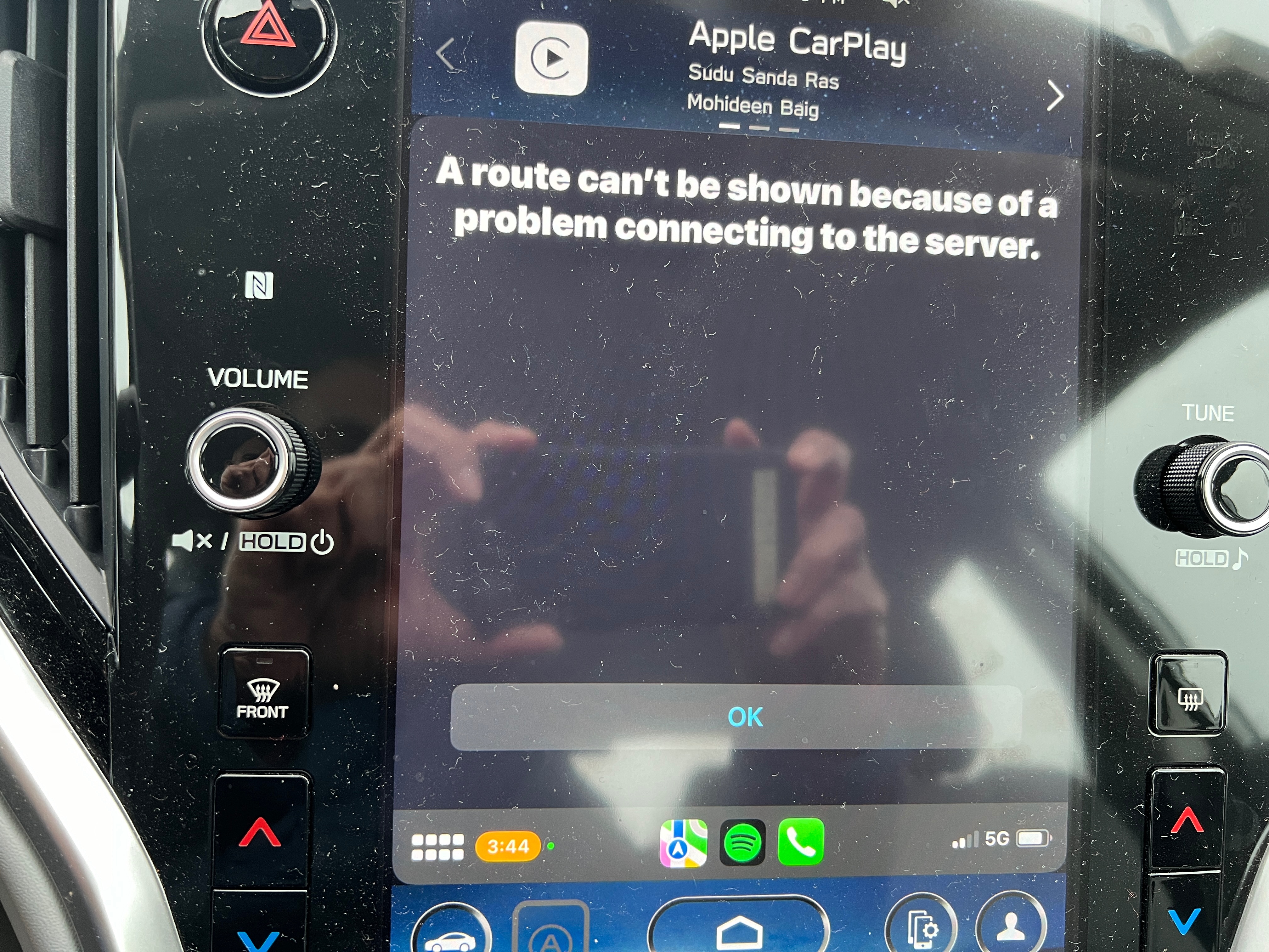 Hello, My CarPlay problems started with iPhone 13 upgrade to iOS 17.3.1. I get the same error "A route can't be shown because of a problem connecting to the server" on our both cars Toyota Venza 2023, and Subaru Legacy 2023. Now with iOS 17.4 the same issue continues. I have removed/forget the devices from the cars and re-setup the phone in both cars without any success. It is obvious the problem is with the iPhone 13 OS upgrade as my family member's iPhone 15 with iOS 17.3.1 works like a charm on both cars. I have attached the screen shots that shows the issue on both cars. Is there a resolution to this issue?