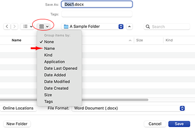 Suddenly when I try to "Save As," the folder structure comes up arranged by date, not name. This makes it cumbersome to try to find the folder(s) I want to sift down to where I want to save the file. Until today the "Save As" function displayed folders by name, alphabetically A-Z. When I simply go to my folders from Go, when not in any program, the folders are still arranged by name, A-Z. How can I get the "Save As" folders to display properly?