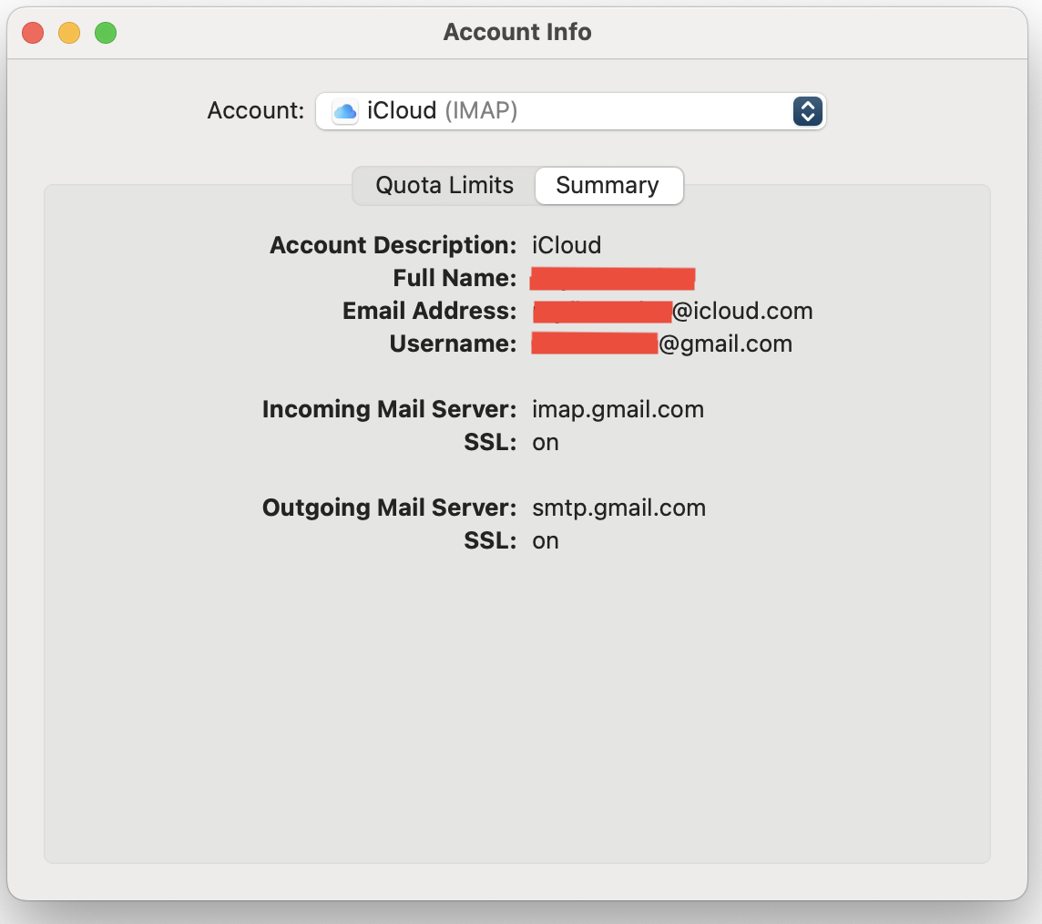 In apple mail when I do a check on account info on my iCloud email account it reveals the server settings are: