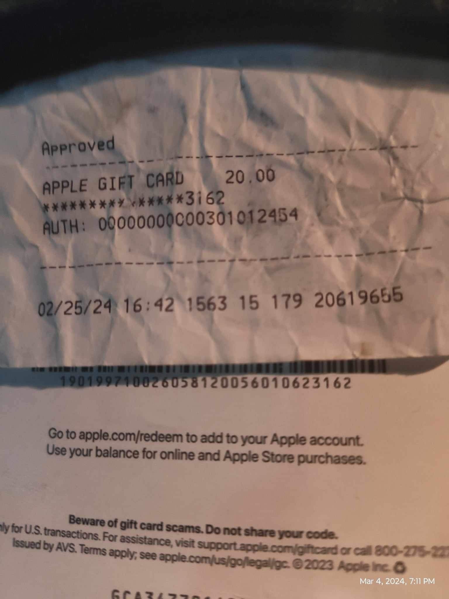 The code got messed up on it i called Apple support they asked me if i had an account with that I need to send the picture of the card to them! So if I can get it to work it is for $20