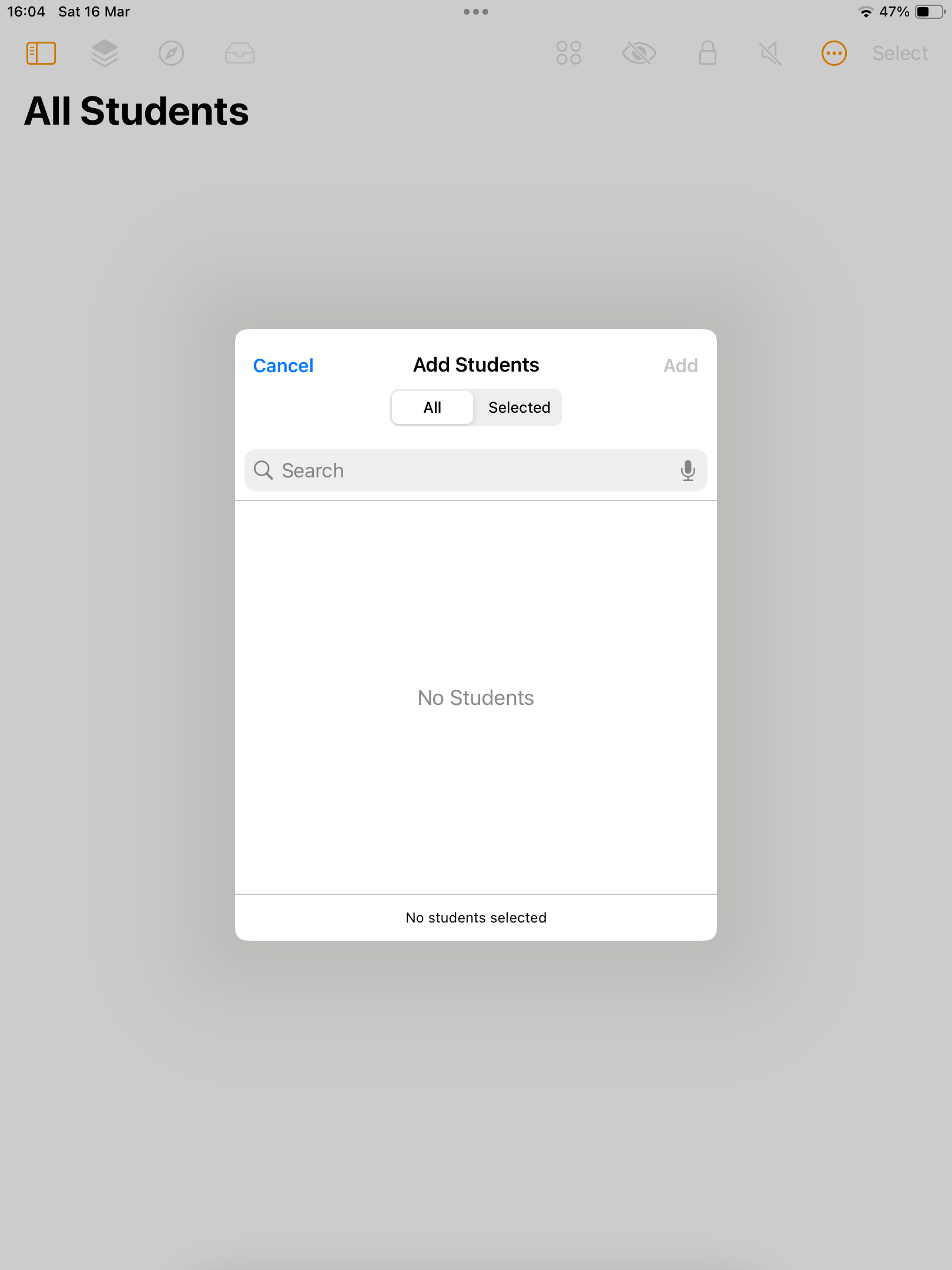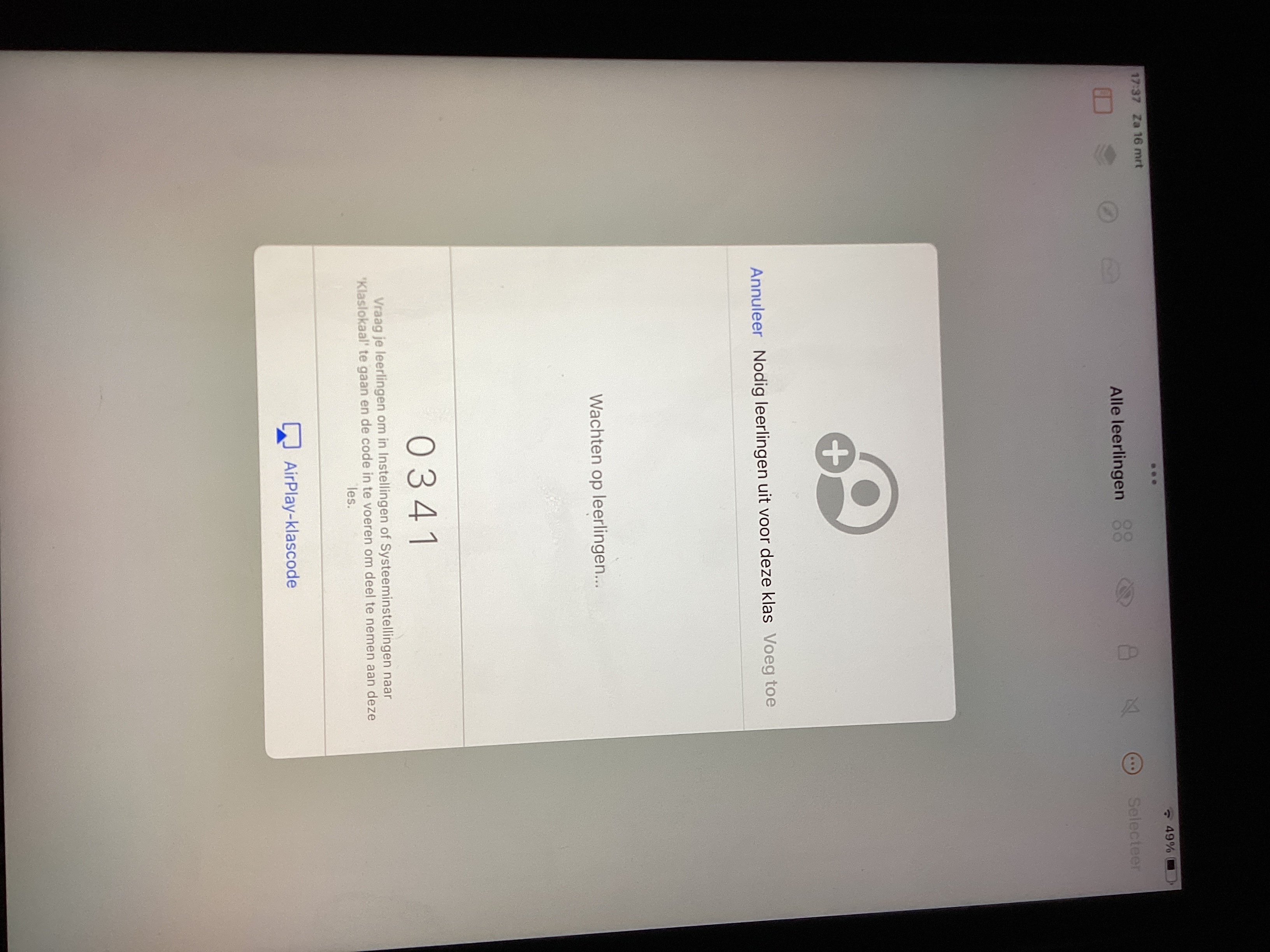 We would like to utilize Apple Classroom on the teachers iPad where Apple Classroom is properly installed (we pushed this with Jamf School). However, on the teachers iPad, when we manually create a new class and click on ‘add students’ the expected four-digit pincode does not appear:
