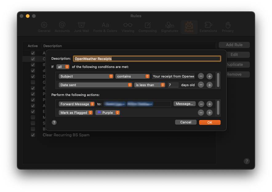 Why doesn't forwarding work in Mail.app rules?