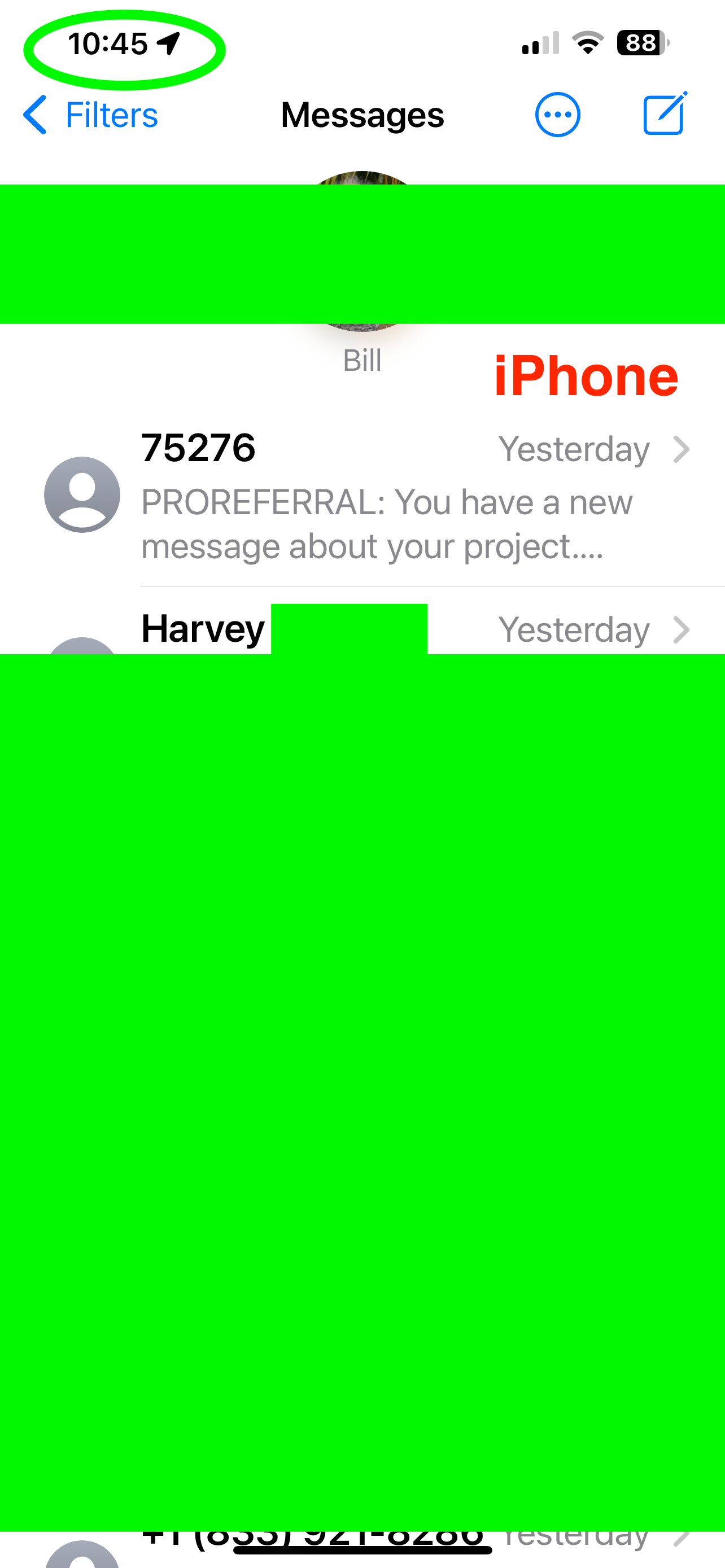 Also, to document the problem, here are screenshots of my iPhone and Mac that were taken simultaneously today when I submitted my update post. These show the message discrepancies between the iPhone and the Mac. The iPhone's most recent message was "75276". The Mac's most recent message from "Harvey". I took both screenshots simultaneously at 10:45 to confirm that at that exact time, there was a discrepancy between the most recent messages displayed on my Mac and my iPhone. The iPhone's most recent message was a SMS text message (green). The time stamp (that I could not provide) was 6/21/24 11:28pm. The Mac's most recent message was a iMessage (blue). The time stamp (that I could not provide) was 6/21/24 8:29pm.