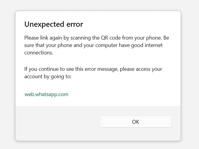 I have tried to link another phone to the same whatsapp desktop and it worked, I have tried another whatsapp desktop from another laptop also the same issue can't connect. so what is the issue?