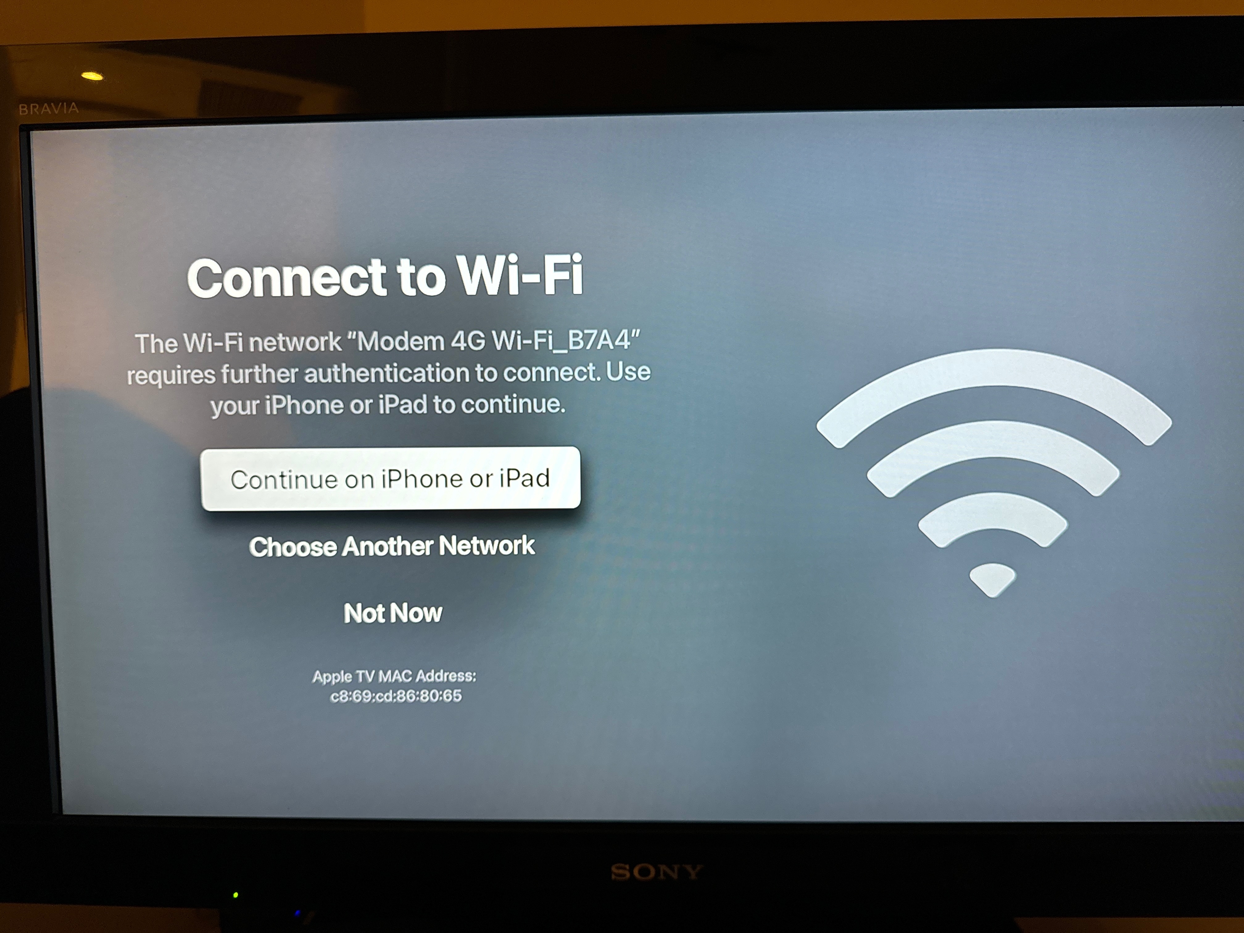 Apple TV HD requires further authentication to connect to Wi-Fi