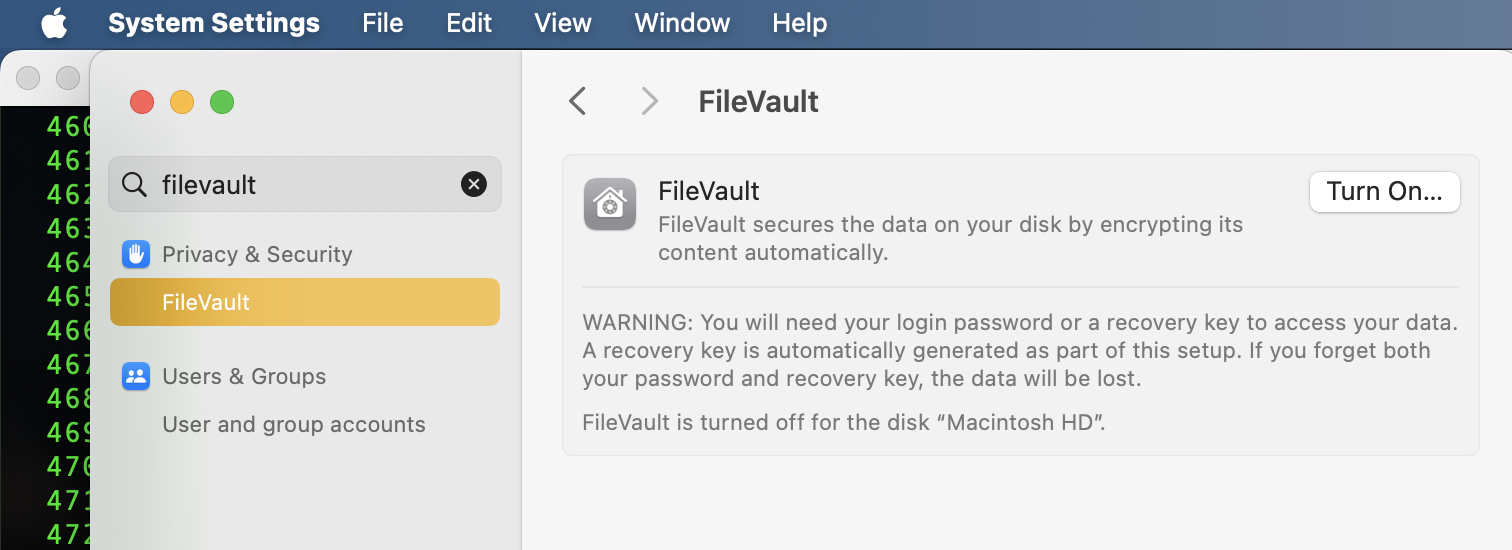 Or, did I read the documentation correctly that I can turn off File Vault with just my password? And then turn it on later when the disk has been decrypted and turn it on again?