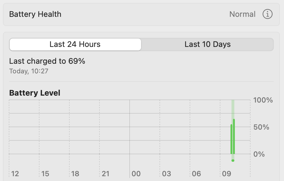 The battery in my MacBook Air M1 has been depleting very fast for the past few days, despite its health being normal with 99% of its initial capacity.