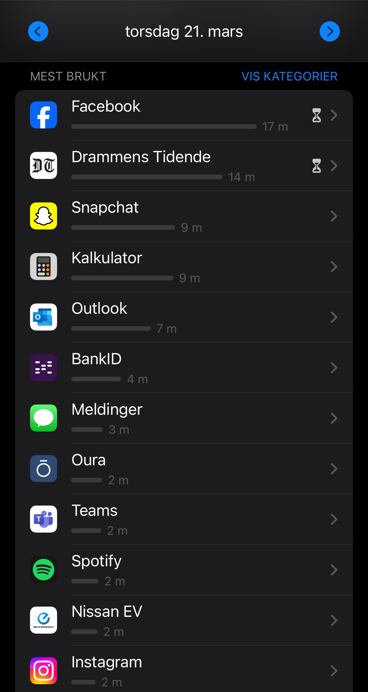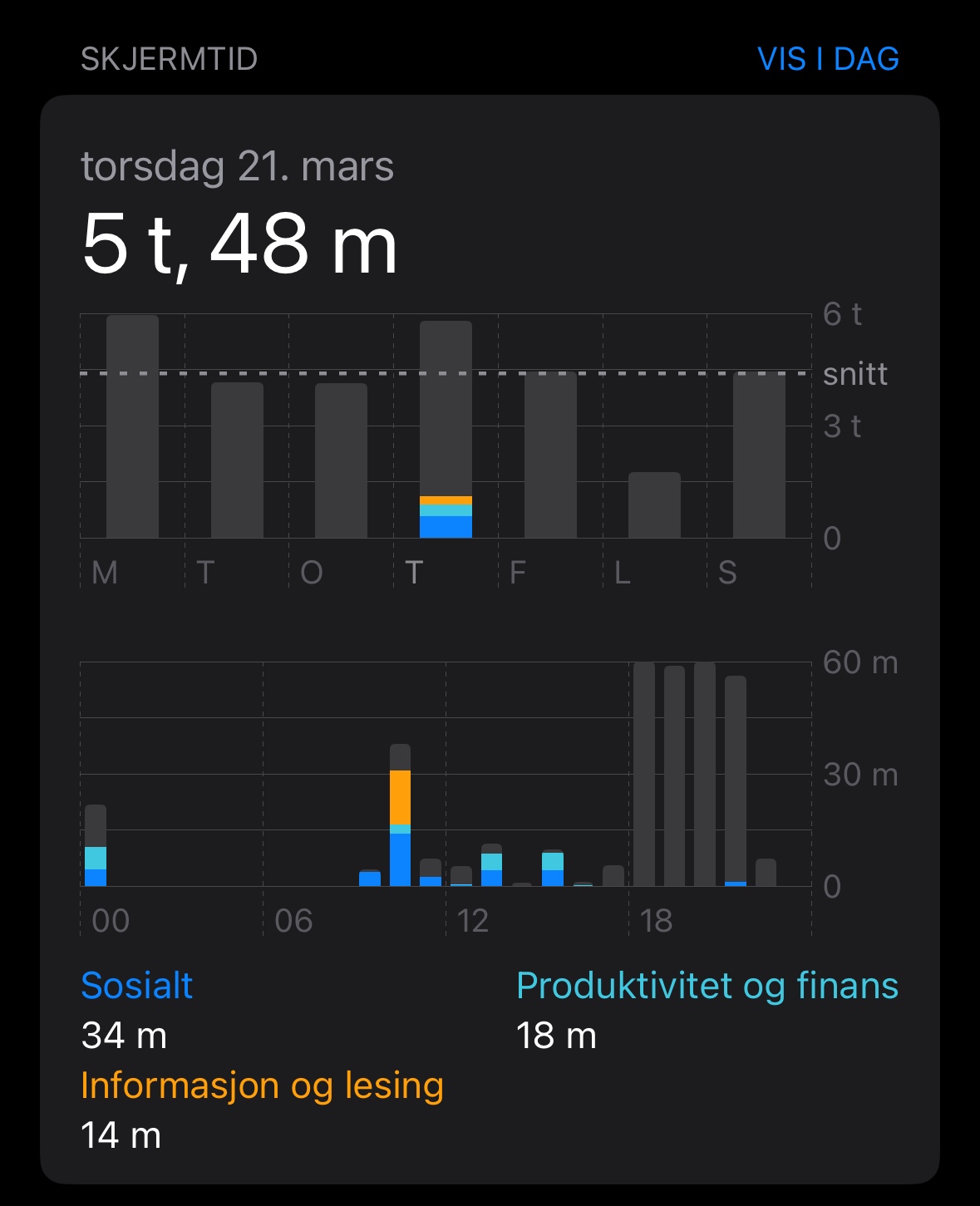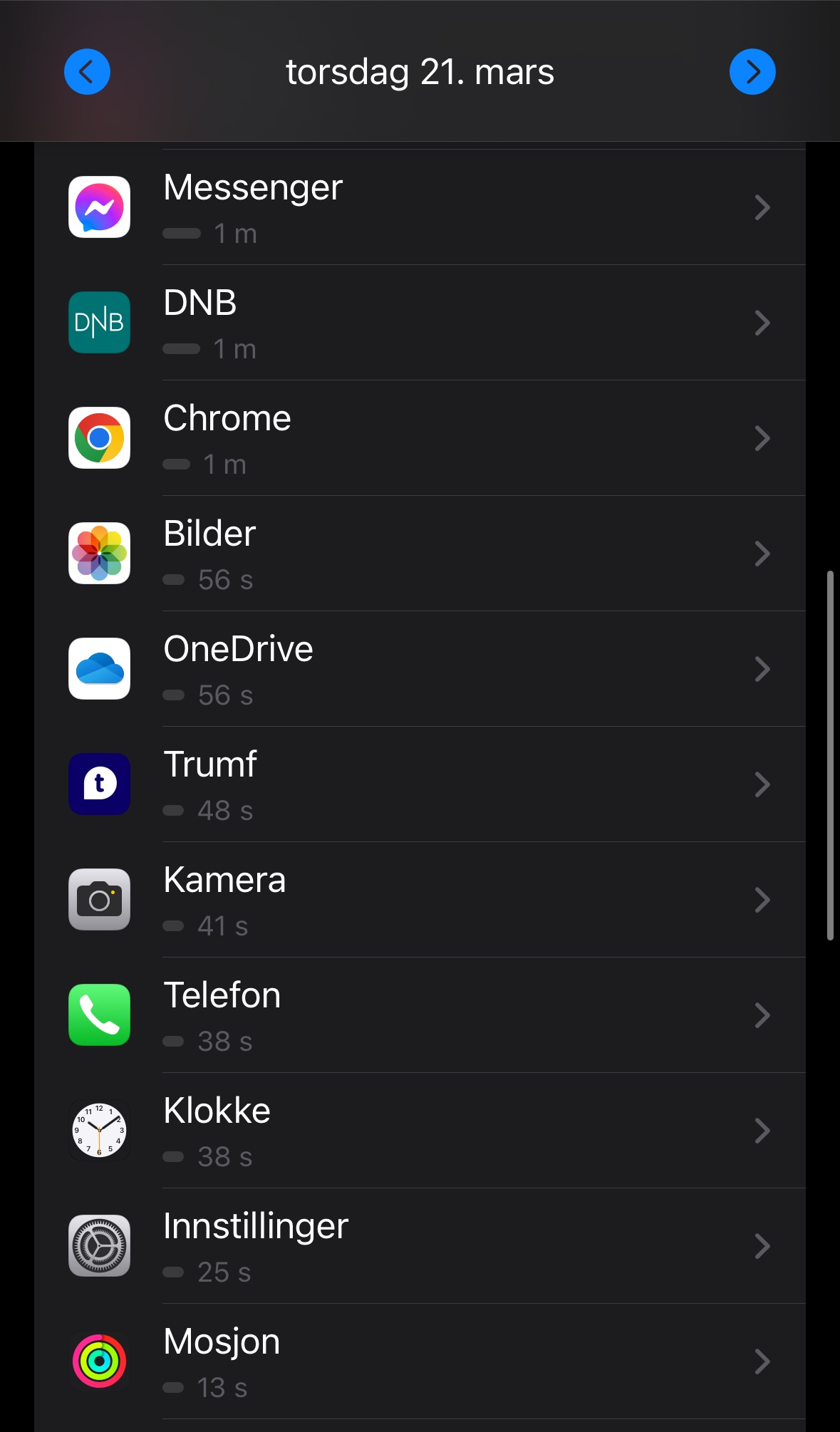 In earlier iOS versions it reported time spent on home screen & locked screen. I don’t know if it is possible to see that anymore. But obviously I haven’t spent 4h 26 minutes on my home screen. On the day in the example, I had the phone to my right laying on the table for the most of the day while attending an 15 hour online seminar. It was in «Do not disturb»-mode, so the always on display was deactivated and the screen completely dark.
