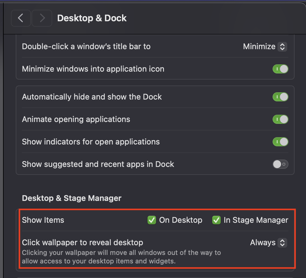 I did the fix with changing the setting to showing wallpaper items 'only in stage manager." which worked for some people but not for me.