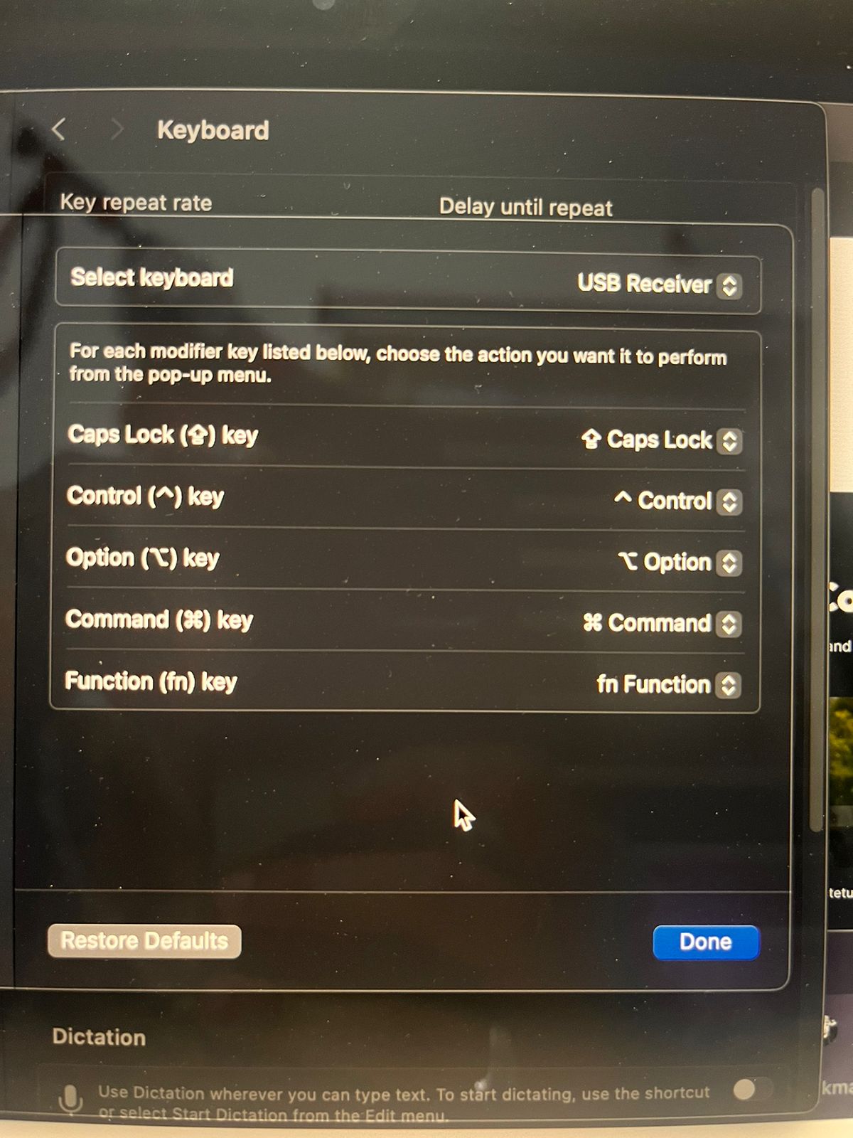 with this path-settings>keyboard>keyboard shortcuts>modifier keys.
