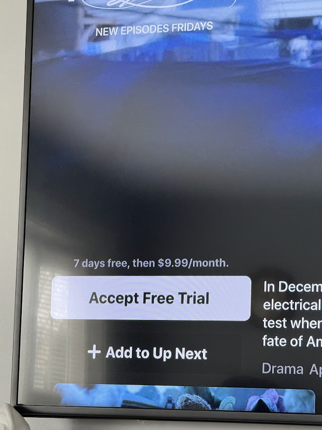 When it shows “Accept Free Trial”, then that would indicate that you are not currently signed in to the Apple TV app on this device, or that you are signed in with an Apple ID that doesn’t have the Apple TV+ subscription linked to it.