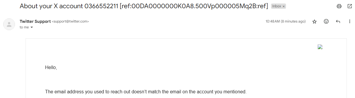 Hello, so for the past few days I've been trying to change my X account password due to me forgetting it. Until there, normal, until I reached out to the page to change my password, which for some reason links to an e-mail address - which according to their description is this "6k********@p***********.*******.***", I assume this is some sort of anonymous fallback e-mail my Apple ID created just for that account? Whenever I try to contact support with my standard Gmail address it just says it's wrong. Can someone help me with that?