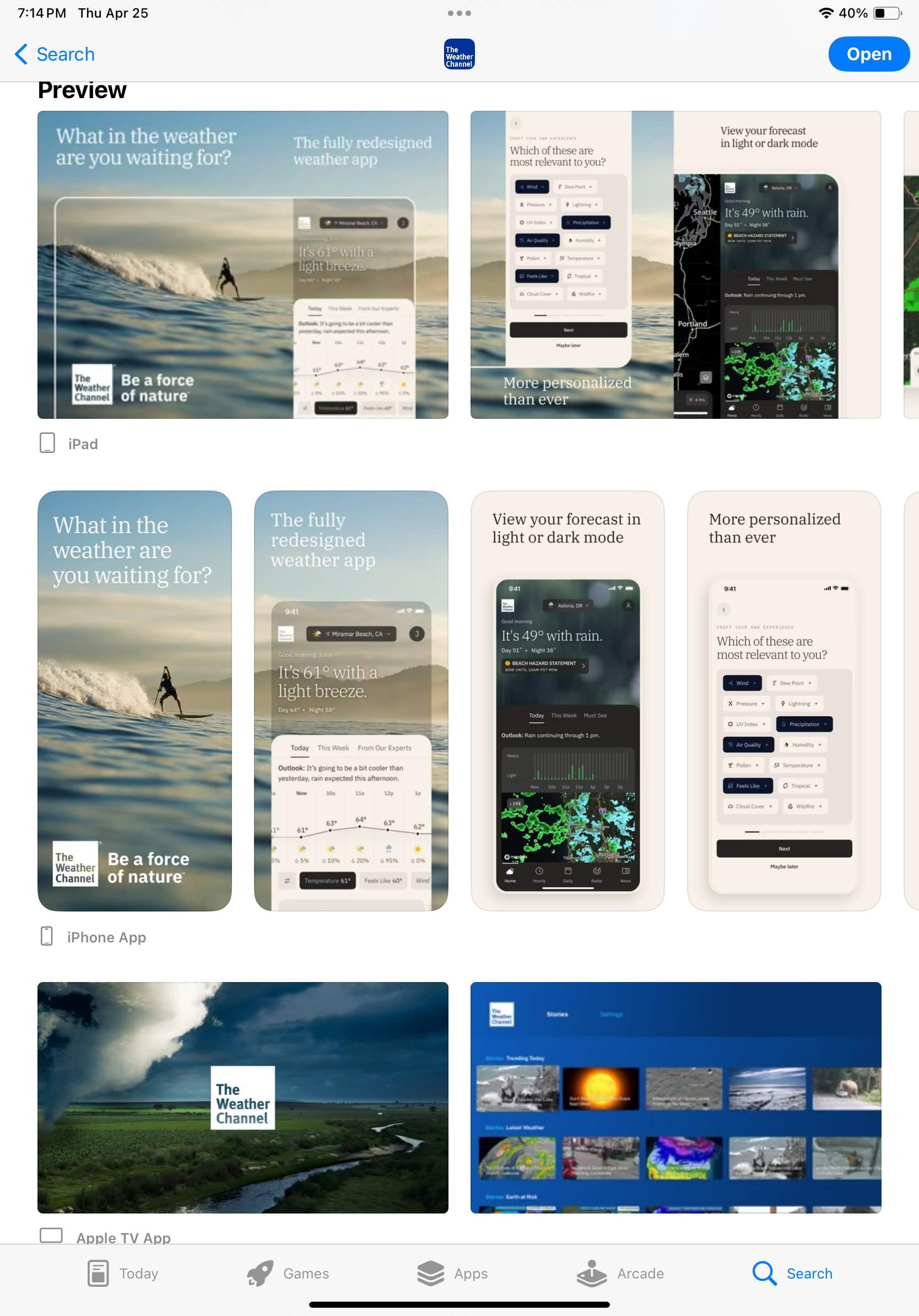 I gave my daughter my 11” Gen 4 iPad Pro which worked fine with the weather channel app. I purchased the newest 12.9” pro which is basically the same tablet just larger. They both have the upgraded memory and 2TB. Weather Channel does not rotate on the 12.9. That just doesn’t seem to make sense/ I’ve checked all the usual suspect issues but everything seems fine. I actually set up the new tablet using my latest backup so everything seems to be still set up the way I like it.