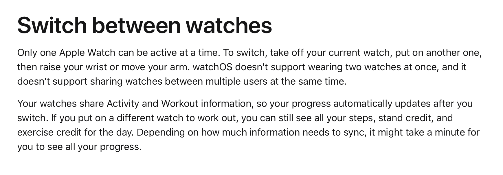 I have 2 Apple watches that are both connected to my iPhone. One for working out and one for the rest of the day. They operate as 2 separate watches on my phone. I want to be able to track my steps and workouts across both watches so I can see my progress through the day and track for the week. Is it possible for both watches to mirror each other or sync the fitness data so at the end of the day I know my total steps without having to look at both watches?