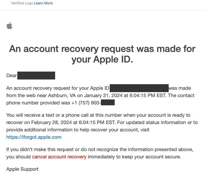 As I said, when I went to the genius bar or called support, the only advice I've been given is to change my password. Which was already something I had done - it is a very complicated password - and not something that actually solves the problem in any way. At least every other week (but sometimes every day for a week), I get the Reset Password on this device notifications on all my devices at the same time. I always click "don't allow" but the concept that someone is (possibly?) only as far as me mistakenly hitting allow from taking control of my AppleID is more than annoying. I get "An account recovery request was made for your Apple ID" emails most of the times in reference to the requests and the locations/phone numbers in them are all over the country and never the same (assuming VPN?)...