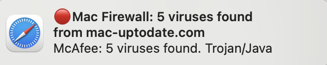 Mac Firewall: 5 viruses found from mac-uptodate.com McAfee: 5 viruses found. Trojan/Java