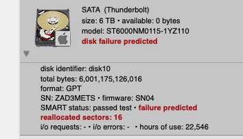 I have two JBOD arrays created in the Apple OS software - main drive is 4 disks creating 36 TB and my backup array is 7 disks creating 52 TB. I have multiple problems that I need to solve: