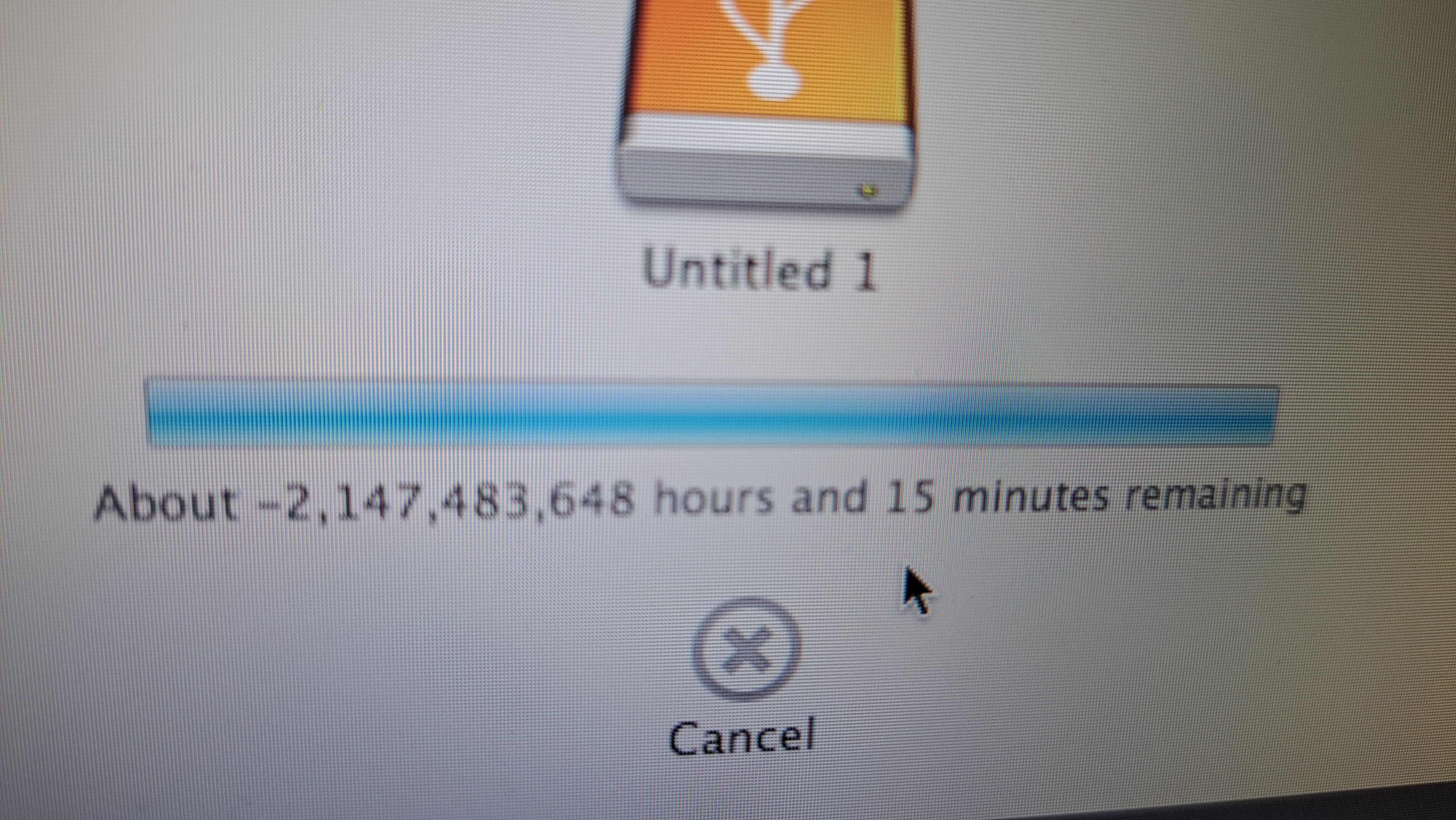 Why is it -2 trillion remaining, I am trying to download a new OS system after the first one crashed.