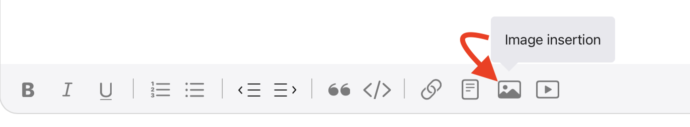There is an "Image insertion" tool in the text entry box's toolbar: