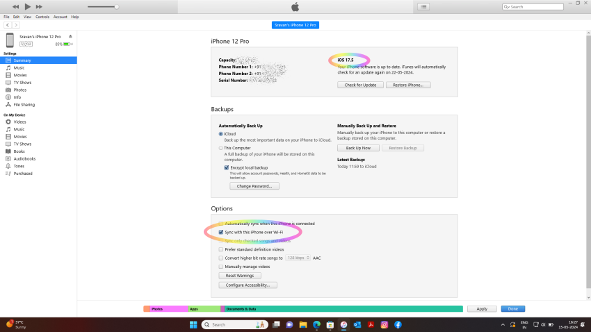 Missing option to sync iPhone over wifi in Windows 11 Apple Devices app